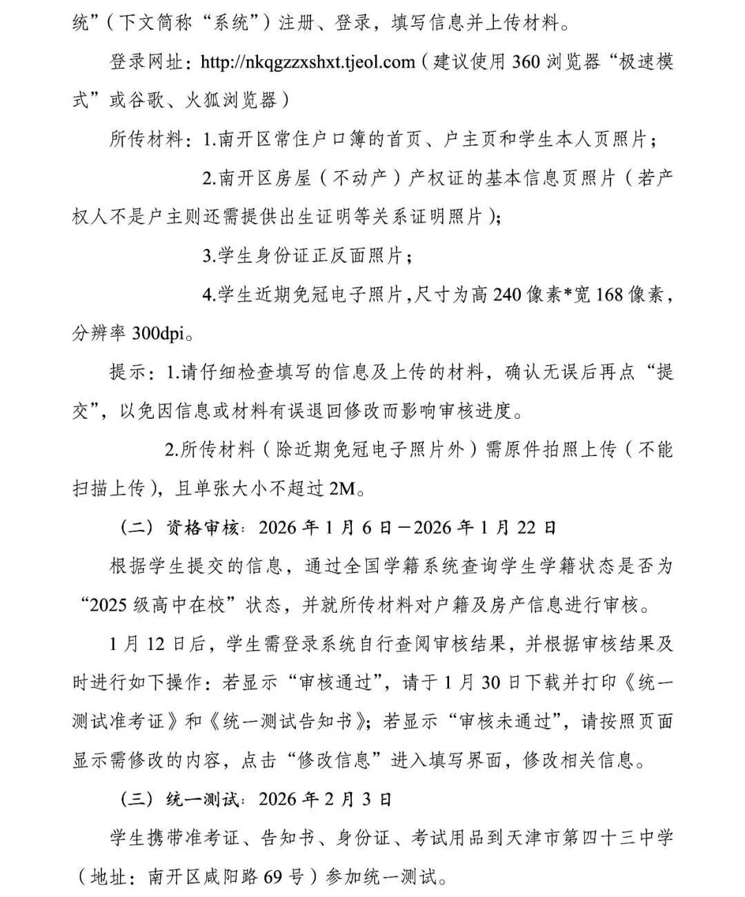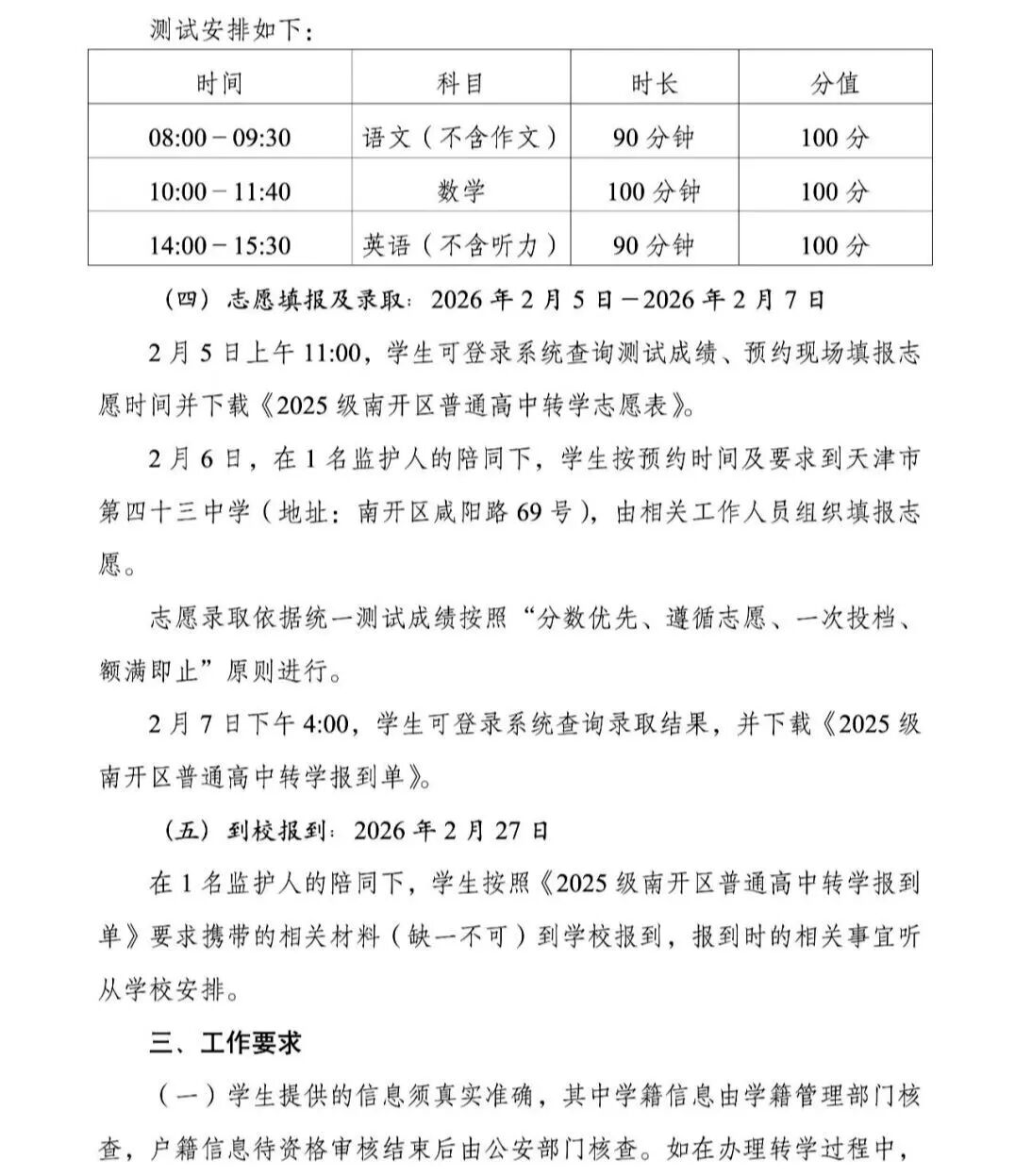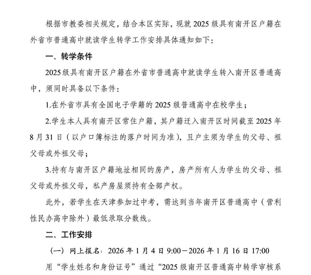 教育局关于2025级具有南开户籍在外省市高中就读转学工作通知