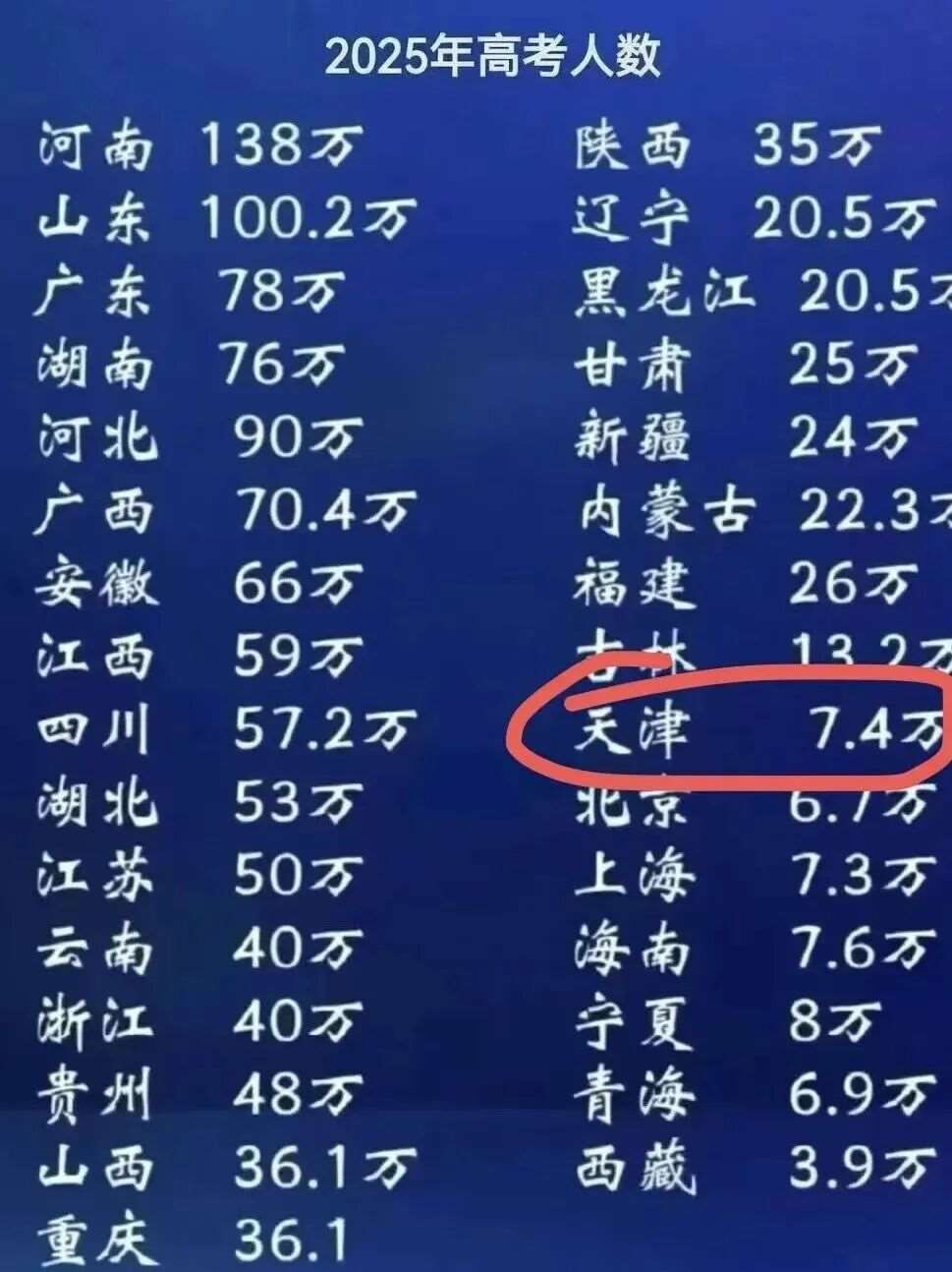虽然基数比河南小,但天津高考人数正在快速反弹。