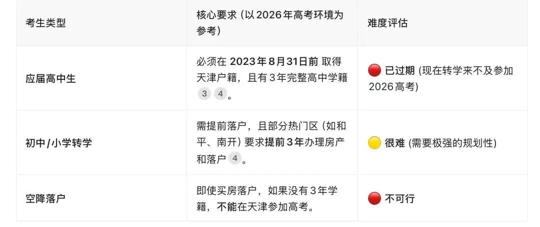 注意: 如果你是为了让孩子参加2026年高考现在才转学,除非孩子户籍早已迁入(且在2023年8月31日前),否则基本无法实现。现在转学通常只能备战2027年或之后的高考。